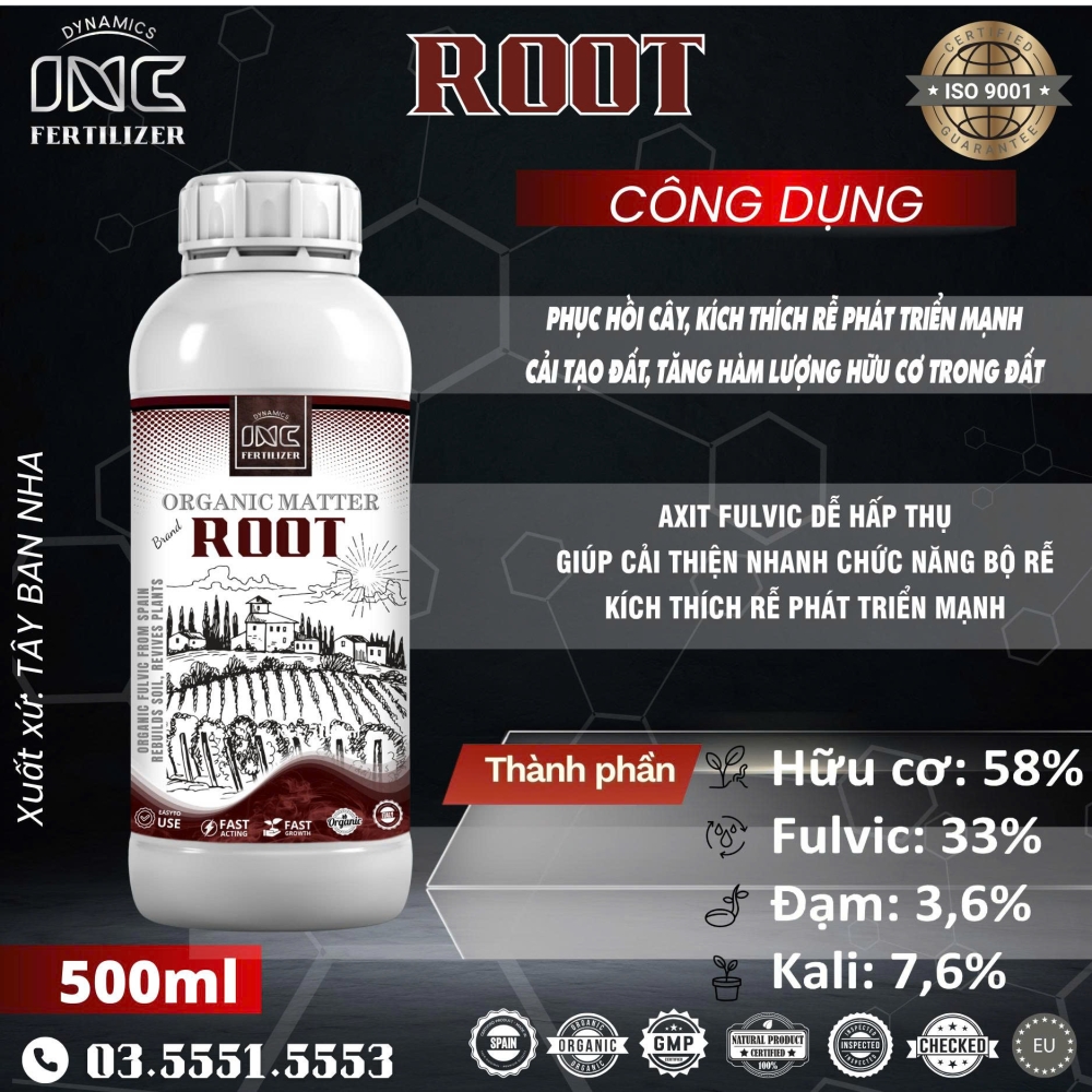 Sản phẩm chứa axit fulvic (27%) và hữu cơ lên đến (45%) so với các sản phẩm khác trên thị trường. DYNAROOT cung cấp dinh dưỡng hữu cơ nhanh chóng, kích thích hệ thống rễ phát triển khỏe mạnh và đâm sâu vào đất